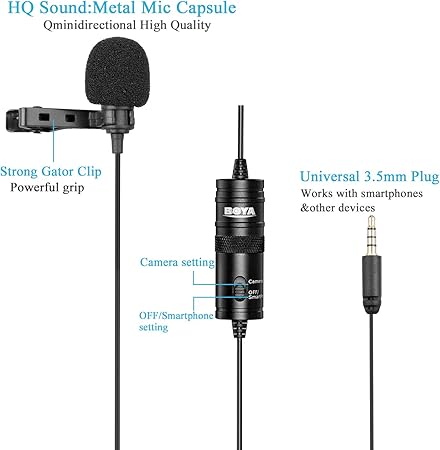 Si estás buscando un buen micrófono de bajo coste, tenemos buenas noticias para ti, ya que te presentaremos el BOYA BY-M1DM micrófono de solapa de excelente calidad, y lo mejor de todo es su precio asequible.