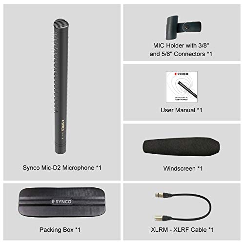 Synco Mic D2 Shotgun-Microphone-Vídeocamara-Hyper-Cardioide, Micrófono Direccional de Condensador con XLR, Microfono Externo Profesional para Entrevista y Vídeo