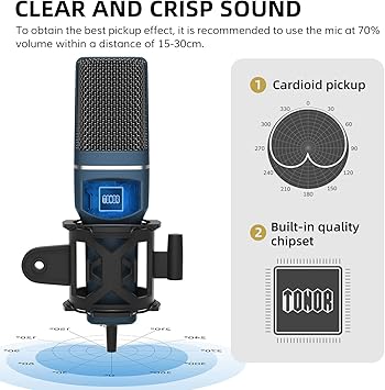 - ENCHUFAR Y USAR: El micrófono TONOR TC-777 está equipado con un puerto de datos USB 2.0, sin necesidad de software de controlador adicional, tarjeta de sonido o alimentación phantom, enchufar y usar. Es compatible con Macs y PCs. Ideal para grabación vocal, grabación de música básica, podcasting, transmisión, video de YouTube, etc. (Nota: No es compatible con teléfonos, iPad y Xbox).