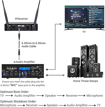Utilizando un cable de audio de seis milímetros y medio, puedes conectar tu TONOR Micrófono Inalámbrico Dual Sistema, a diversos equipos: bien, los de sonidos exclusivamente, como también los que transmiten voz e imágenes, salvo pocas excepciones.